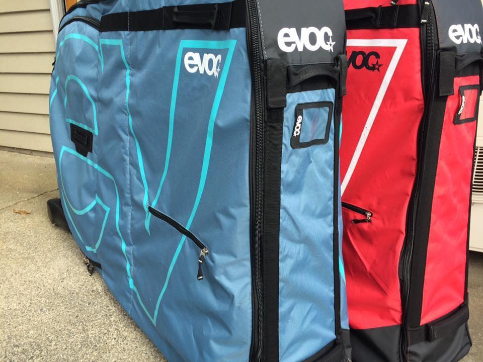 Your choice of a red or blue Evoc Bike Bag which fit most bikes.